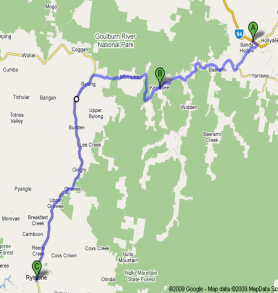 What a joy, fast sweeping corners no traffic to speak of as the area is generally pretty quiet. We came in from the Sandy Hollow end as we’d stayed in Merriwa the night before. By the way avoid staying at the pub in Merriwa $70.00 for the night in a damp shoebox with one chair and a wardrobe. Typical pub digs but way overpriced. We did however have some really nice lamb cutlets from the bistro so it wasn’t a total disaster.